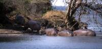 with many hippos lying in the river and fresh lion marks only 100 m from our tents. |