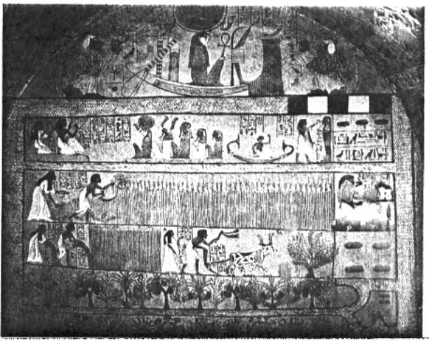 [4025] Manfred Görg, Mythos, Glaube und Geschichte. Die Bilder des christlichen Credo und ihre Wurzeln im Alten Ägypten, Düsseldorf (Patmos) 1992,175 zeigt das Grab des Bürgermeisters Sennedjem in Deir el Medina in Theben-West.