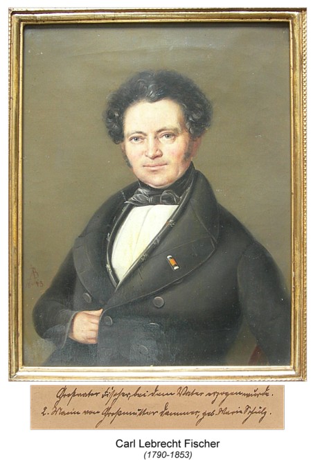 Carl Leberecht Fischer [Eltern] [Bild] wurde am 31. Oktober 1790 in Pyritz geboren 1. Er starb am 7. April 1853 in Stettin 2. Er heiratete Marie* Dorothee Elisabeth Schultz am 26. Januar 1822 in Stettin, Schloßkirche 3. Er arbeitete 1822 in Stettin als Kanzlist beim Königlichen Polizei-Direktorium. Er arbeitete 1844 in Stettin als Polizei-Post-Expediteur. 4